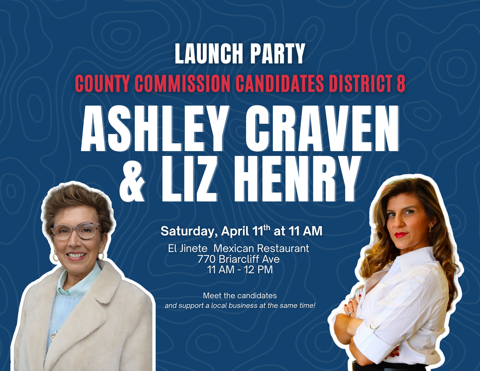 Good representation starts with listening. That’s why District 8 residents are invited to us for a Launch & Learn with the candidates running for County Commission. Ashley Craven & Liz Henry