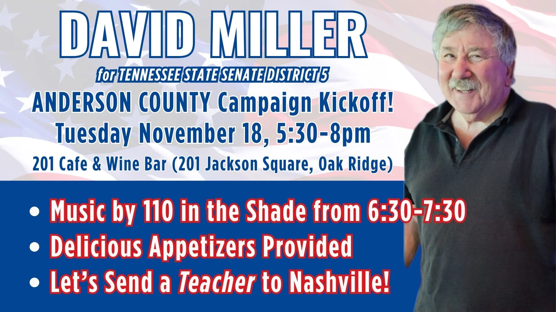 Come meet David as he kicks off his campaign for Tennessee Senate District 5. Come meet David, hear his vision for the future, and learn how to get involved with his 2026 campaign team.